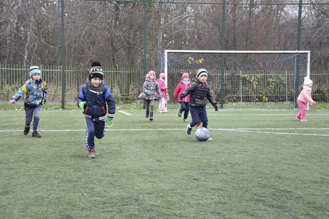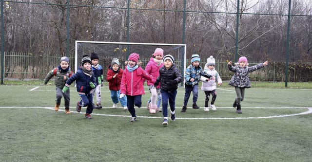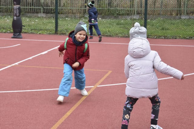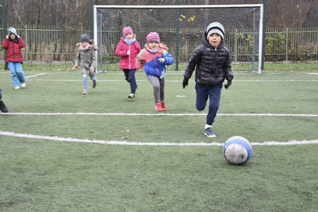 Tuż obok szkoły, o której dziś opowiadam znajduje się Orlik – boisko, z którego dzieci korzystają, kiedy tylko się da. Oprócz tego mają zajęcia z lekkoatletyki, oczywiście – ogólnorozwojowe, ale także przygotowujące do sportów zimowych czy zawierające elementy sztuk walki. Poza boiskiem, jest jeszcze ogrodzone podwórko i duża sala gimnastyczna. Nieważne jednak, gdzie i jaką aktywność dzieci wykonują. Nadrzędnym założeniem pedagogów jest to, że ten czas ma być przyjemny. Wiadomo, że jeśli coś lubimy, chętniej bierzemy w tym udział. A to o tyle ważne, że kształtuje nawyki na całe życie.