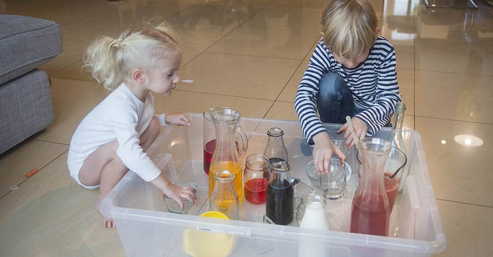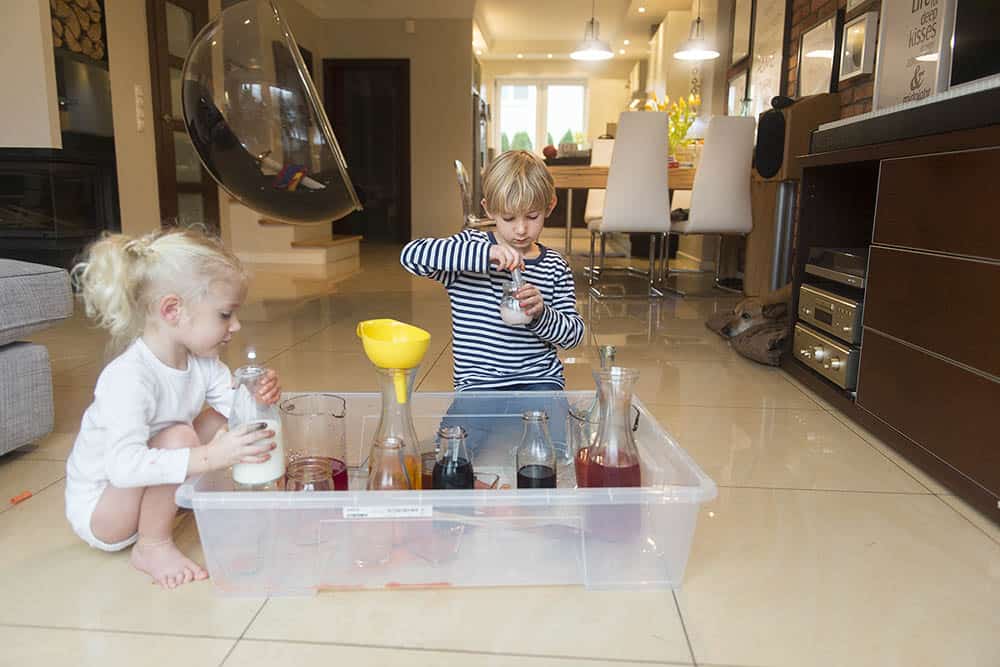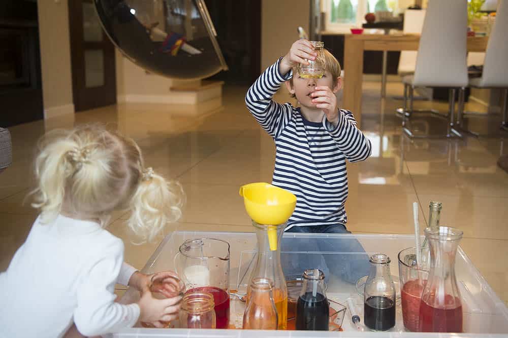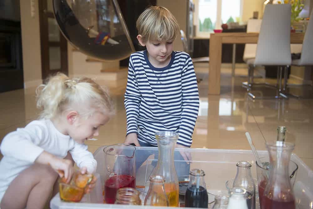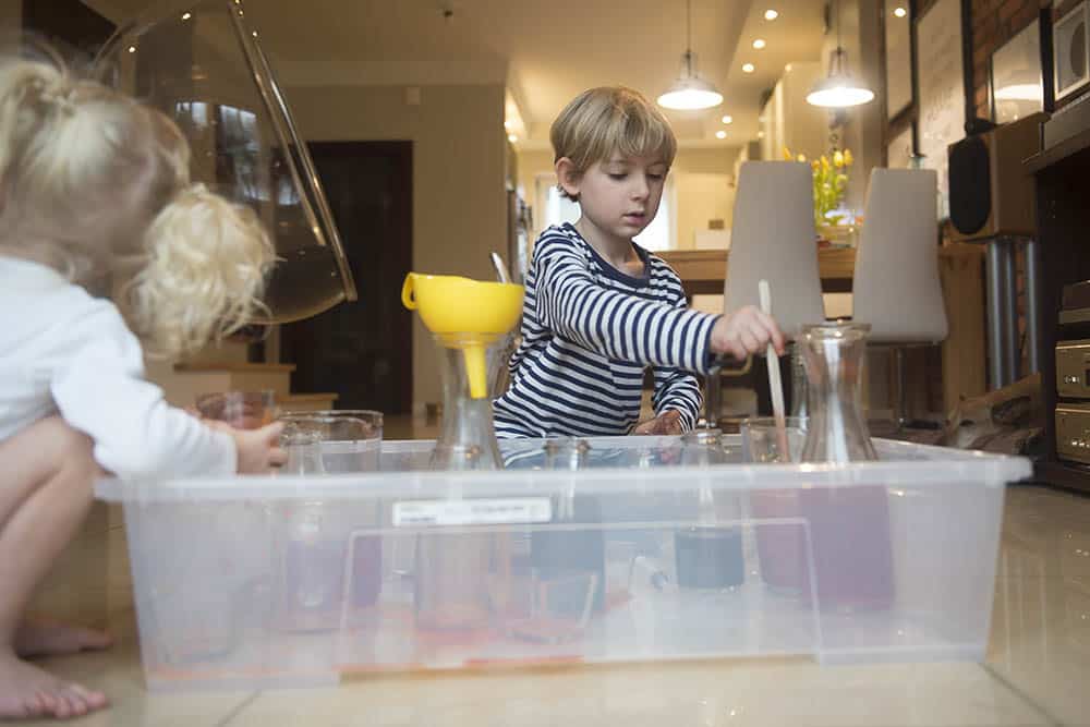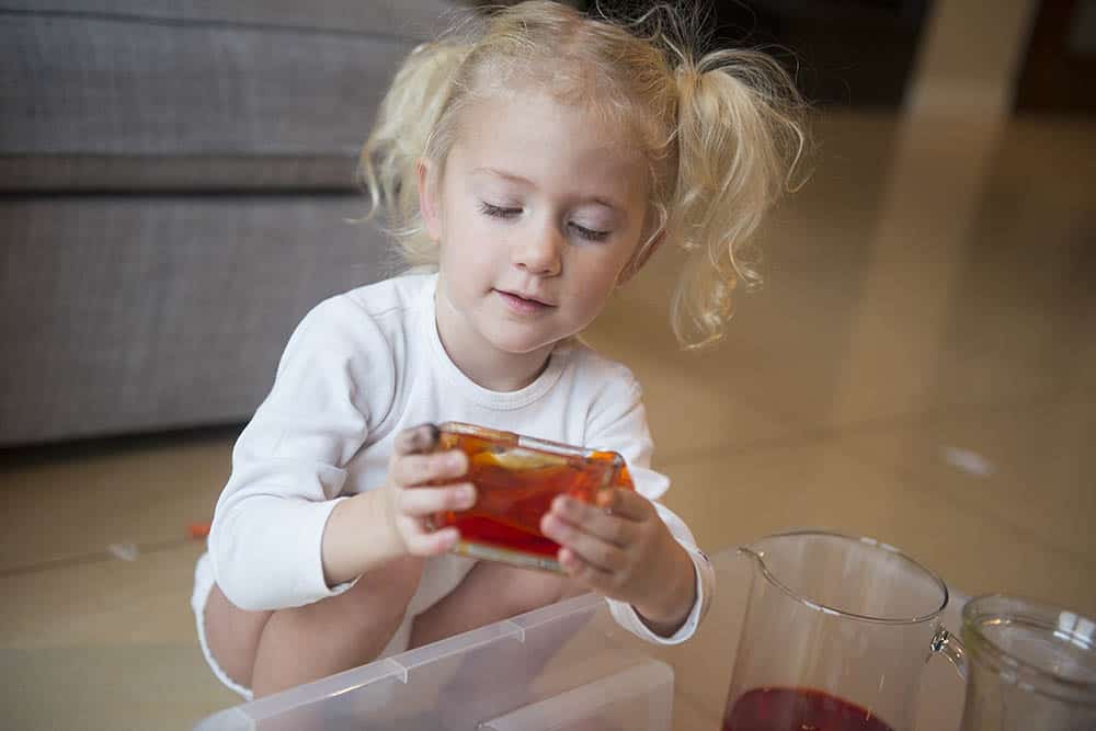 My bawiliśmy się wszyscy razem – dwulatka, pięciolatek i… ja. Naprawdę takie przelewanie cieczy ma w sobie coś uspokajającego, bo serio mi się podobało.