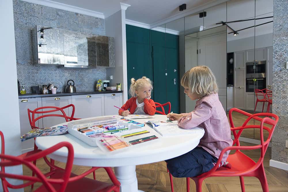 Zamieszkaliśmy w Apartamencie 106 i był to strzał w “10”. Ja trochę musiałam w Gdańsku popracować (lub “posiedzieć przy komputerze” jak to mawiają Leo i Mila), dlatego bardzo doceniałam większą przestrzeń niż niewielki, hotelowy pokój. Kiedy ja – no, niech będzie – siedziałam z tym laptopem :P, dzieciaki huśtały się w hamaku, bawiły w piratów i oglądały bajki na Netflixie.