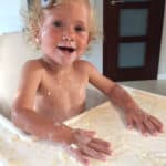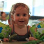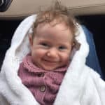 Uwielbia się kąpać, czeka przed wanną i jest gotowa jako pierwsza. Lubi nasze zajęcia na basenie (cieszę się, że za chwilę znów się zaczynają, po wakacyjnej przerwie). Wszędzie jest jej pełno, trudno uwierzyć, ale opanowała trudną sztukę biegania na czworaka(!).