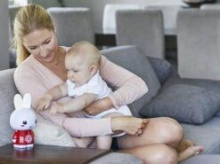 - obsługuje format MP3 i ma zapisane popularne piosenki, kołysanki i bajki oraz “biały szum” do uspakajania niemowląt; całą jego zawartość można aktualizować dzięki wbudowanej karcie 4GB Micro SD i dołączonemu kablowi USB