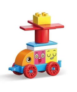 - różne kształty klocków (w tym sześciany, płytki, łuki, walce, element z ruchomymi kołami, elementy z zaokrąglonymi kształtami) – pozwalają na tworzenie płaskich i przestrzennych figur, a także na konstruowanie liter alfabetu i cyfr
