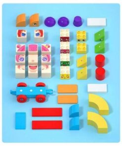 Klocki w rożnych kolorach i kształtach, z nadrukowanymi obrazkami, zostały stworzone z myślą o dzieciach, aby wspierać ich rozwój i kreatywność.