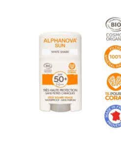 Wodoodporny, bezzapachowy krem w sztyfcie do twarzy z filtrem SPF50+ w kolorze białym. Chroni przed promieniami UVA oraz UVB. Nie zawiera chemicznych filtrów.
