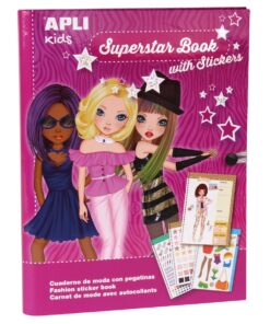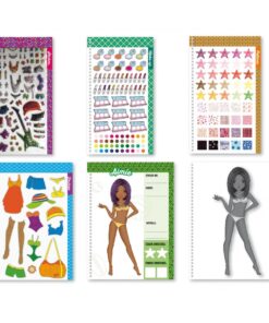 - w zestawie: 17 plansz z naklejkami (10 x ubrania, 2 x akcesoria, 2 x kosmetyki, 2 x wzory,) 6 arkuszy z modelkami do tworzenia własnych projektów, 11 dodatkowych arkuszy z czarno-białymi modelkami