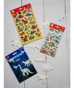 Zestaw metalicznych naklejek Apli Kids z motywem dinozaurów. Doskonale sprawdzą się do ozdobienia zeszytów, książek, laurek, albumów, zaproszeń na urodziny, itp. Arkusz składa się z 26 wypukłych naklejek jednorazowego użytku z metalicznym połyskiem. Zabawa naklejkami to świetny sposób na rozwijanie małej motoryki, pobudzenie kreatywności, pomysłowości i zdolności narracyjnych.