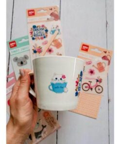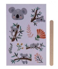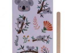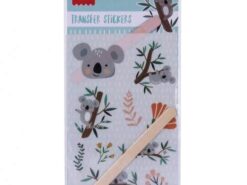 Zestaw transferowych naklejek Apli Kids z motywem koali. Na specjalnej folii znajduje się aż 10 naklejek, które można odcisnąć na różnych powierzchniach za pomocą dołączonego patyczka. Doskonale sprawdzą się do ozdobienia kubka, ramki na zdjęcia, zeszytu czy szafki. Mogą być użyte na gładkich i płaskich powierzchniach typu drewno, metal, płótno, szkło, ceramika, tkanina. Wystarczy przyłożyć naklejkę do wybranego przedmiotu i potrzeć ją od zewnątrz drewnianym patyczkiem.