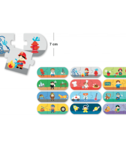 Układanie puzzli przez dzieci ma ogromne walory edukacyjne. Maluch podczas zabawy ćwiczy pamięć, koncentrację, rozwija zdolności wzrokowe oraz przestrzenne. Puzzle Zawody marki Apli Kids to idealne połączenie nauki z zabawą! Zadaniem malucha jest dopasowanie narzędzi i atrybutów do wykonywanego zawodu, np. strażak łączy się z wężem gaśniczym oraz hydrantem. Duże, wykonane z grubego kartonu puzzle idealnie mieszczą się w małej dłoni. Kolorowa, wesoła grafika zachęci do zabawy. Zapakowane w trwałe, kartonowe pudełko. Idealnie sprawdzą się na prezent.