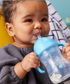 - oprawka z innowacyjną słomką pozwala pić z kubka bez względu na kąt pod jakim dziecko go trzyma, słomka podąża za napojem;