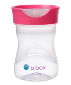 Ten malinowy kubek treningowy, to nowy członek rodziny innowacyjnych akcesoriów b.box. Zaprojektowany po to by ułatwić twojemu dziecku przejście od niekapka do zwykłego kubka. Umożliwi zdobycie nowej umiejętności bez wywoływania potopu przy każdej próbie. Pokrywka pozwala pić jak ze szklanki jednocześnie zapobiegając nadmiernemu rozlewaniu płynu przy przechyleniu kubeczka. Dzięki temu, że jest przezroczysta dziecko widzi napój i może oceniać jak bardzo nachylić kubeczek.