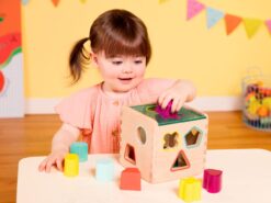 Zabawka uczy rozpoznawania i dopasowywania zarówno kształtów, jak i kolorów.