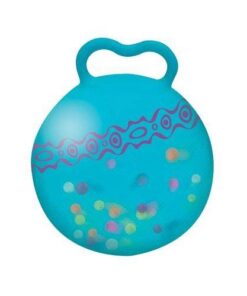 W trakcie podskoków kuleczki znajdujące się wewnątrz piłki wesoło podskakują, a niektóre rozświetlają się na kolorowo.