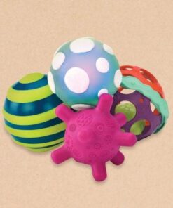Każda piłka ma inną fakturę i kolorystykę, co zapewnia różnorodność bodźców dla zmysłów dziecka – stymulacja polisensoryczna.