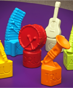 Instrumenty wykonane są sensorycznie, co zapewnia wyjątkowo cenne bodźce podczas zabawy. Ponadto odstawianie instrumentów wymaga od dziecka doboru kształtów i kolorów.