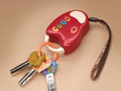 Zestaw składa się z trzech kluczy samochodowych dla dzieci w dwóch wersjach kolorystycznych – czerwonej i fioletowej. Przyciski pilota kryją różne efekty dźwiękowe, a klucze wykonane są z bezpiecznej dla zębów i dziąseł dziecka stali nierdzewnej. Zabawka wyposażona jest również w wbudowaną latarkę i działa na 2 baterie AA. Zestaw nie zawiera szkodliwych substancji, takich jak ftalany i BPA.
