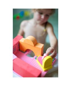 BathBlocks to połączenie klasycznych klocków z zabawą w kąpieli. Wanna i basen to idealne miejsce do tworzenia wodospadów, wodnych kulodromów i unoszących się na wodzie konstrukcji do zabawy. Woda sprawia, że klocki stają się lepkie, dzięki czemu bez problemu je ze sobą połączysz. Ponadto możesz przykleić je do wanny bądź płytek w łazience.