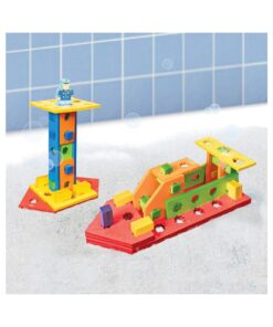 BathBlocks to połączenie klasycznych klocków z zabawą w kąpieli. Wanna i basen to idealne miejsce do tworzenia wodospadów, wodnych kulodromów i unoszących się na wodzie konstrukcji do zabawy. Woda sprawia, że klocki stają się lepkie, dzięki czemu bez problemu je ze sobą połączysz. Ponadto możesz przykleić je do wanny bądź płytek w łazience.