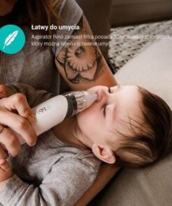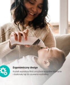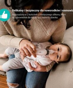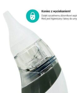 - Delikatny i skuteczny: zapewnia ciągłe ssanie zalegającego śluzu bez ryzyka podrażnienia śluzówki nosa; wielorazowe końcówki silikonowe są bezpieczne dla delikatnego noska maluszków