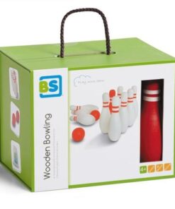 Drewniane biało – czerwone kręgle. Dasz radę zbić wszystkie? Ten gracz, który strąci najwięcej kręgli wygrywa. Zestaw zawiera: kręgle oraz 2 drewniane piłeczki. Do zestawu dołączono poręczny bawełniany worek do przechowywania.