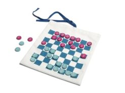 Warcaby, szachy i kółko i krzyżyk to jedne z najpopularniejszych gier planszowych. A co powiesz na wersję podróżną tych gier 3 w 1? Woreczek to jednocześnie plansza (trwały nadruk dwustronny) oraz miejsce na przechowywanie pionków.
