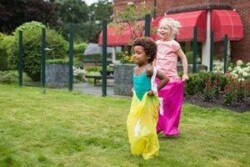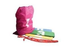 Worki do skakania. Komplet zawiera 4 sztuki worków oraz dwie linki do wyznaczenia startu oraz mety.