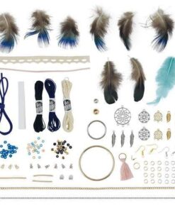Przepleć nici przez ozdobną bazę, a następnie dodaj kilka piór, koralików, łańcuszków i zawieszek, aby stworzyć niepowtarzalną biżuterię dla siebie, lub do podarowania w prezencie przyjaciółce, bądź innej bliskiej osobie.