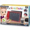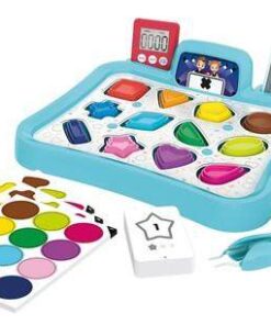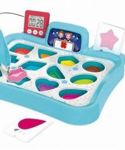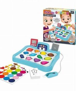 Jeśli pęseta dotknie metalowego obrzeża tacy, zapali się światło i rozlegnie się brzęczyk. Każdy kształt występuje w 3 różnych rozmiarach, dla 3 poziomów trudności. Starsze dzieci mogą również nauczyć się kolorów pochodnych z połączenia kolorów jakie widnieją na wygranych kartach.