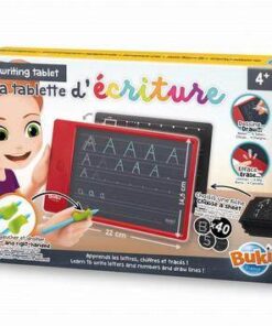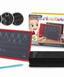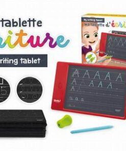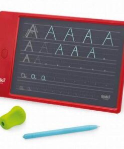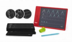 Tablet z ekranem LCD do nauki pisania liter alfabetu dużymi i małymi literami, cyframi od 0 do 9 oraz szlaczkami.