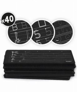 – 20 kart łącznie 40 arkuszy do nauki (26 liter alfabetu, liczby od 0 do 9, linie i szlaczki)
