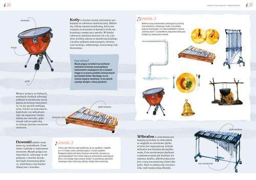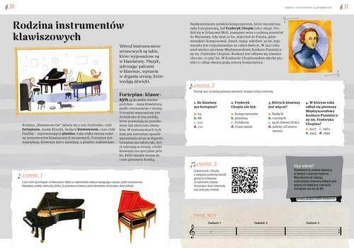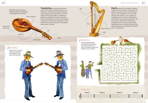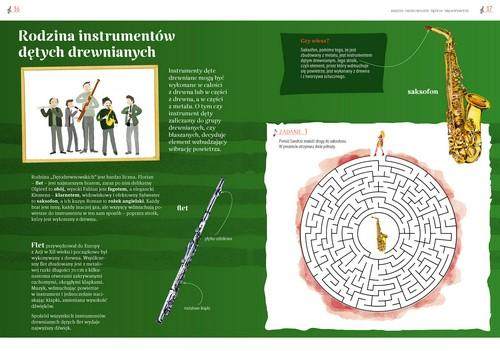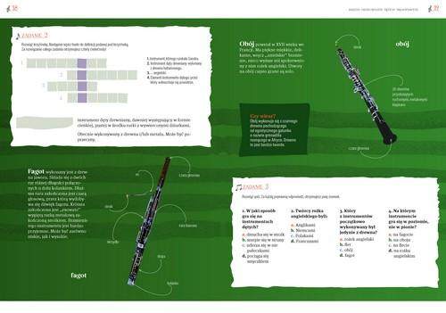 Do krótkich opisów dołączone są liczne ciekawostki. W zeszycie znajduje się też wiele różnorodnych zadań do wykonania, są krzyżówki, quizy, rebusy oraz opisy, jak samemu zrobić proste instrumenty. Atrakcją jest też odsłuchiwanie urywków muzycznych za pomocą skanera QR kodów w telefonie. Za wykonanie zadań dziecko otrzymuje nuty o różnej długości, te zaś wpisuje na pięciolinii i w ten sposób bawi się w kompozytora.