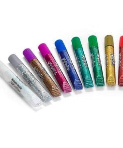 Klej brokatowy doskonale sprawdza się w pracach plastycznych. Służy do przyklejania różnych elementów, a także do ozdabiania rysunków – dzięki niemu można tworzyć różne brokatowe wzory. Produkt jest bezpieczny dla skóry i łatwo zmywa się z ciała. Przygotujcie się na godziny twórczej zabawy! Zestaw zawiera: 9 brokatowych, zmywalnych, kolorowych klejów.