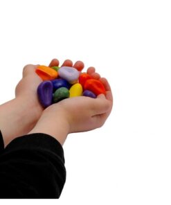 Crayon Rocks to producent niezwykłych kredek, które inspirują nie tylko kolorem ale również kształtem. Crayon Rocks przypominają kamyki, które dzięki swojej prostej formie pobudzają wyobraźnię oraz wspomagają rozwój małej motoryki u dzieci. Owalny kształt zmusza Malucha do odpowiedniego trzymania kredki, dzięki czemu polecane są przez nauczycieli oraz terapeutów. Większość kredek, które są dostępne na rynku wykonane są z parafiny. Do produkcji Crayon Rocks wykorzystywany jest wosk sojowy, który jest w 100 % naturalny. Dzięki temu kredki są gładkie oraz całkowicie bezpieczne. Crayon Rocks oprócz właściwości terapeutycznych świetnie rysują. Są bardzo dobrze napigmentowane dzięki czemu oddają ładny, intensywny kolor. Idealnie sprawdzają się do malowania dużych powierzchni.
