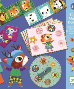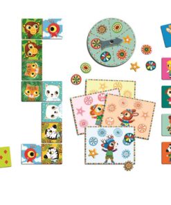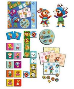 Zestaw trzech gier dla najmłodszych dzieci: domino, memo i ruletka- ze zwierzątkami. Daje dzieciom dużo radości, rozwija spostrzegawczość, i ćwiczy pamięć. Całość zapakowana w estetyczne i trwałe opakowanie. Elementy gier wykonane z grubego lakierowanego kartonu.