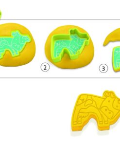 Zestaw do modelowania składający się z 6 różnych gotowych foremek z wizerunkami zwierzątek. Książeczka instruktażowa “krok po kroku”.