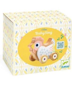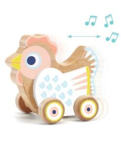Mała kurka na kółkach, z której płynie delikatna melodia podczas ruchu.