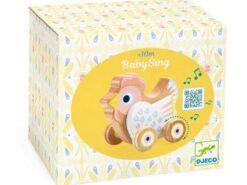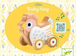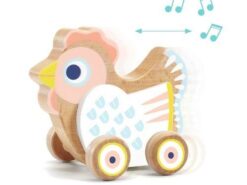 Mała kurka na kółkach, z której płynie delikatna melodia podczas ruchu.