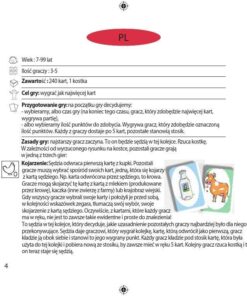 – albo wybieramy ilość punktów do zdobycia. Wygrywa gracz, który zdobędzie oznaczoną ilość punktów. Każdy z graczy dostaje po 5 kart, pozostałe stanowią stosik.