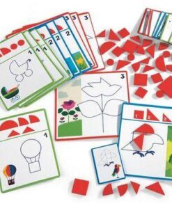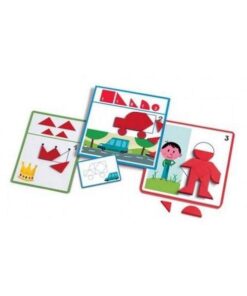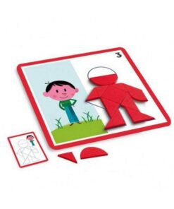 Gra o rosnacej trudności nauki geometrii w prosty i zabawny sposób. Wystarczy postępować zgodnie z kartą instruktażową, aby utworzyć obraz. Zawiera 12 kart instrukcji (4 x łatwe, 4 x trudne i 4 x skomplikowane), 12 kart rozwiązań i 36 drewnianych elementów.