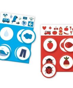 Loteryjka obrazkowa “KOLORY”. Każde dziecko lub rodzic ma inną planszę z obrazkami, należy dopasować element pasujący do swojej planszy. W zestawie znajduje się 16 kart-obrazków i 4 plansze.