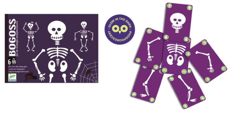 Aby karty świeciły, należy je wystawić na działanie światła, na kilka minut przed rozdaniem.W ciemnościach rozpoznasz połamane szkielety  poprzez przerywaną linię. Duża karta ze świecąca obramówką pomoże wam odnaleźć w ciemnościach talię.Wystarczy ja umieścić na środku podkładki.