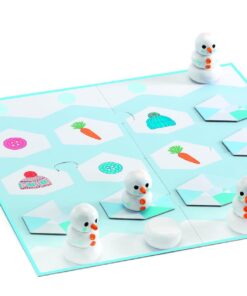 Przygotowanie gry: Złóż planszę i połóż ją na środku. Ułóż 12 kart tafli lodowych na 12 polach na rzece. Złóż bałwanki i umieść je na 4 polach na jednym brzegu rzeki.