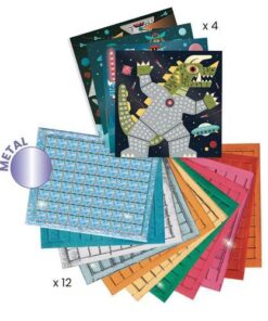 Zawartość: 4 ilustrowane szablony, 12 plansz z piankowymi błyszczącymi mozaikami, instrukcja obrazkowa „krok po kroku”