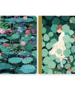 Komplet 2 notesów z kolekcji LOVELY PAPER firmy Djeco. Okładka ozdobiona nadrukiem, brzegi notesów wykończone ozdobną taśmą, oprawa miękka, 1 notes – kartki w linię, 1 notes – kartki czyste. Ilość kartek: 20 (10,5 x 15 x 0,5 cm)