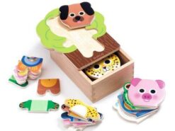 Układanka drewniana DRZEWO MILUSIŃSKICH- składa się z 18 kolorowych elementów, maluch może ułożyć 6 zwierzaków dopasowując brzuszki, główki oraz nóżki pod względem kolorystycznym. Odpowiedniej wielkości elementy idealnie dopasowują się do małych rączek.