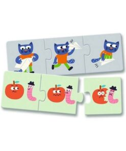 Zabawne, edukacyjne puzzle dla najmłodszych. Zabawa polega na dopasowaniu elementów puzzli w ten sposób, aby złożyć z trzech elementów historyjkę. Zestaw składa się z 24 puzzli z których powstanie 8 historyjek. Zabawa uczy spostrzegawczości, koncentracji.
