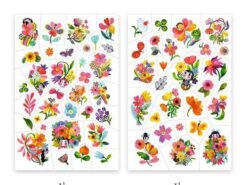 Dwa arkusze pełne kolorowych tatuaży. Wytnij wybrany tatuaż, delikatnie odklej ochronną folię, przyłóż tatuaż do skóry i lekko zwilż papierek. Przyciśnij mocno papierek przez 30 sekund, potem delikatnie usuń, a tatuaż pozostanie na skórze.