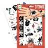 Dwa arkusze pełne kolorowych tatuaży. Wytnij wybrany tatuaż, delikatnie odklej ochronną folię, przyłóż tatuaż do skóry i lekko zwilż papierek. Przyciśnij mocno papierek przez 30 sekund, potem delikatnie usuń a tatuaż pozostanie na skórze.