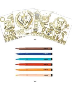 Przy pomocy załączonych mazaków- pędzelków, należy pokolorować obrazki z motywem EGIPTU. Ilustracje mają ozdobne, wypukłe złote kontury, które ułatwiają kolorowanie. Zestawy artystyczne Kolor, są częścią gamy Artistic, mini kolekcji oferujących różnie techniki twórcze