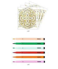 – 4 karty z wytłoczonymi złotymi konturami, ułatwiającymi kolorowanie