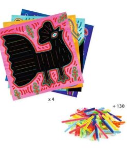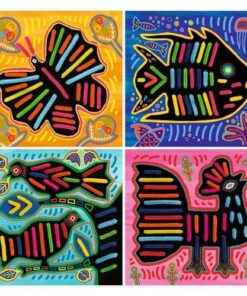 Kreatywny zestaw artystyczny “MIĘKKIE ZWIERZĄTKA”. Ręczne i twórcze tworzenie zwierzątek z kolorowych szelinowych drucików. Po wypełnieniu, ilustracja staje się pięknym obrazem inspirowanym sztuką Kuna z Ameryki Południowej.
